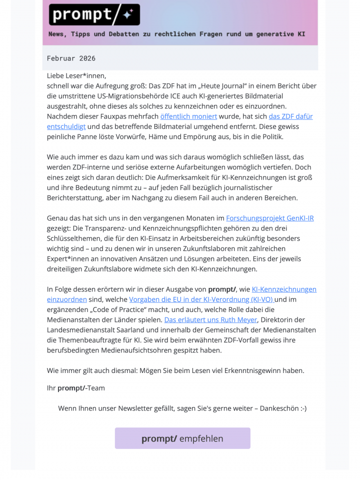 In der Februar-2026-Ausgabe von prompt/ geht es schwerpunktmäßig um KI-Kennzeichnugen.